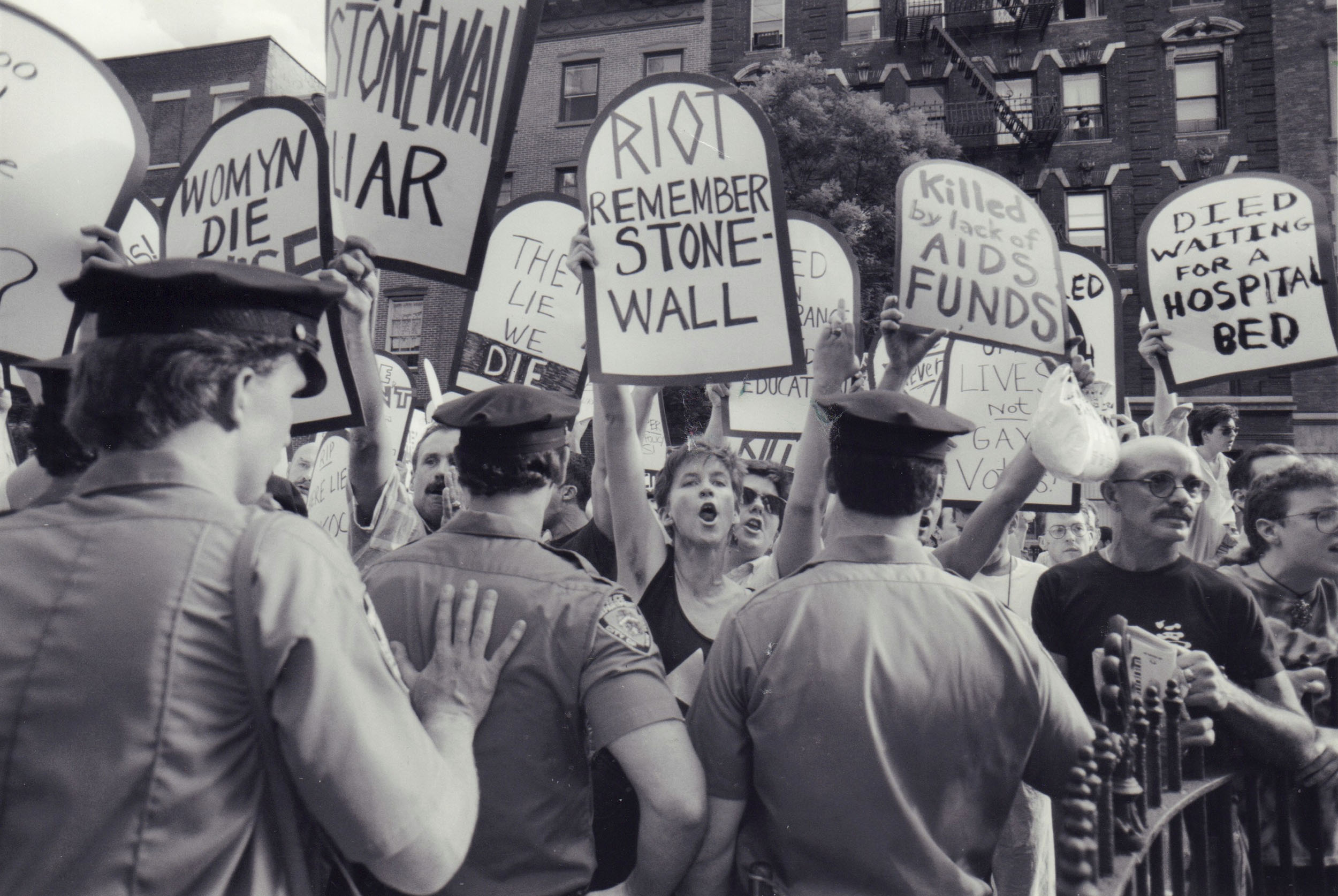 The Stonewall riots of 1969 America - a series of spontaneous, violent demonstrations of LGBTQ+ members against a police raid on the Stonewall Inn, Manhattan.