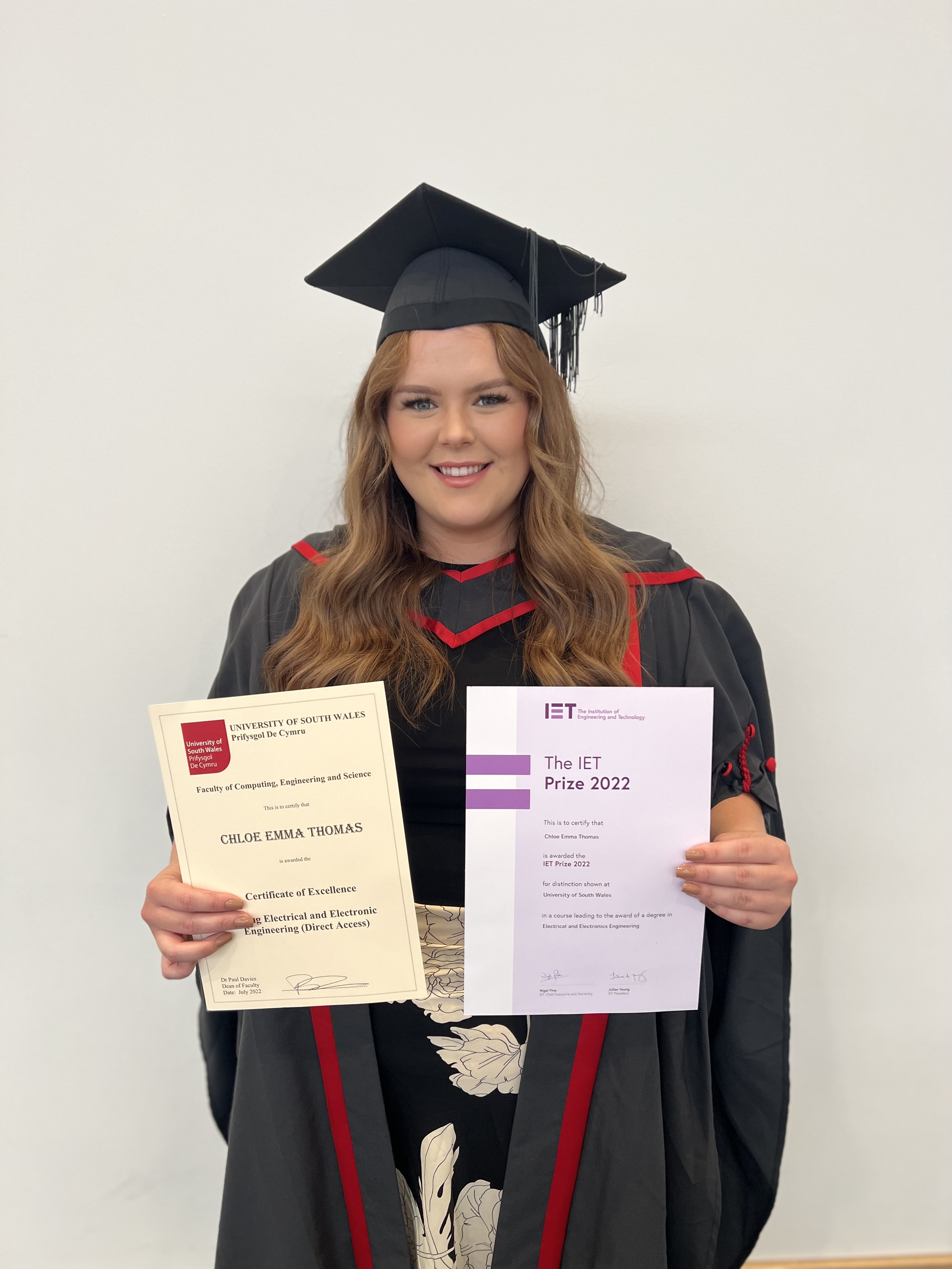 Although it has taken slightly longer than a conventional university course due to it being part-time, I feel a huge sense of achievement gaining the qualification whilst working in a full-time role. After recently getting my results, I was over the moon to find out that not only did I receive a First- Class Honours Degree, but that I was awarded the IET Prize for most outstanding student! Whilst at my graduation ceremony I was delighted to be given my award by the secretary of the IET. I was also presented with an additional award by the Dean of the University – the Certificate of Excellence for USW. It was a phenomenal end to my university education, and I’m looking forward to the future!