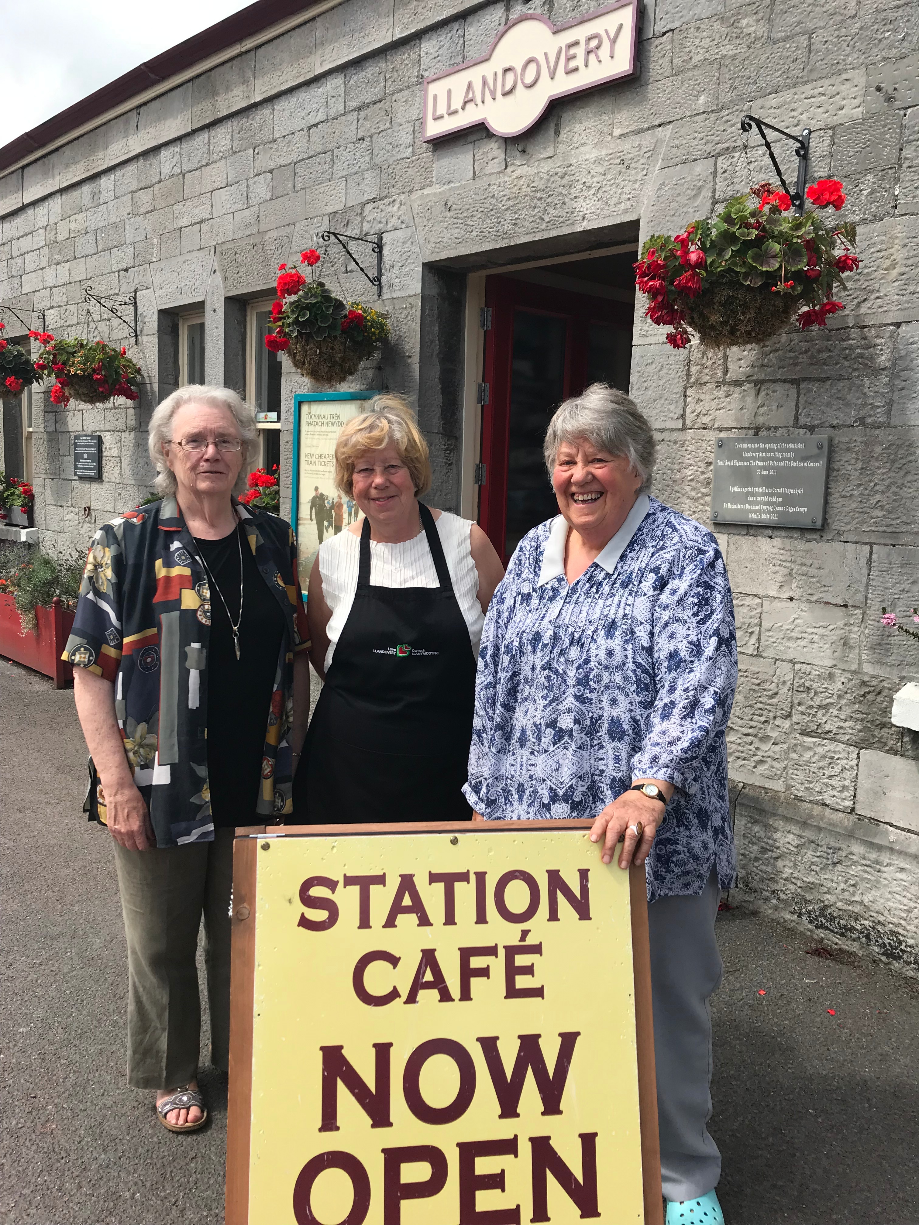 (Valerie and David May and Kathleen Duncan enjoy a regular catch up in Llandovery Station Cafe)