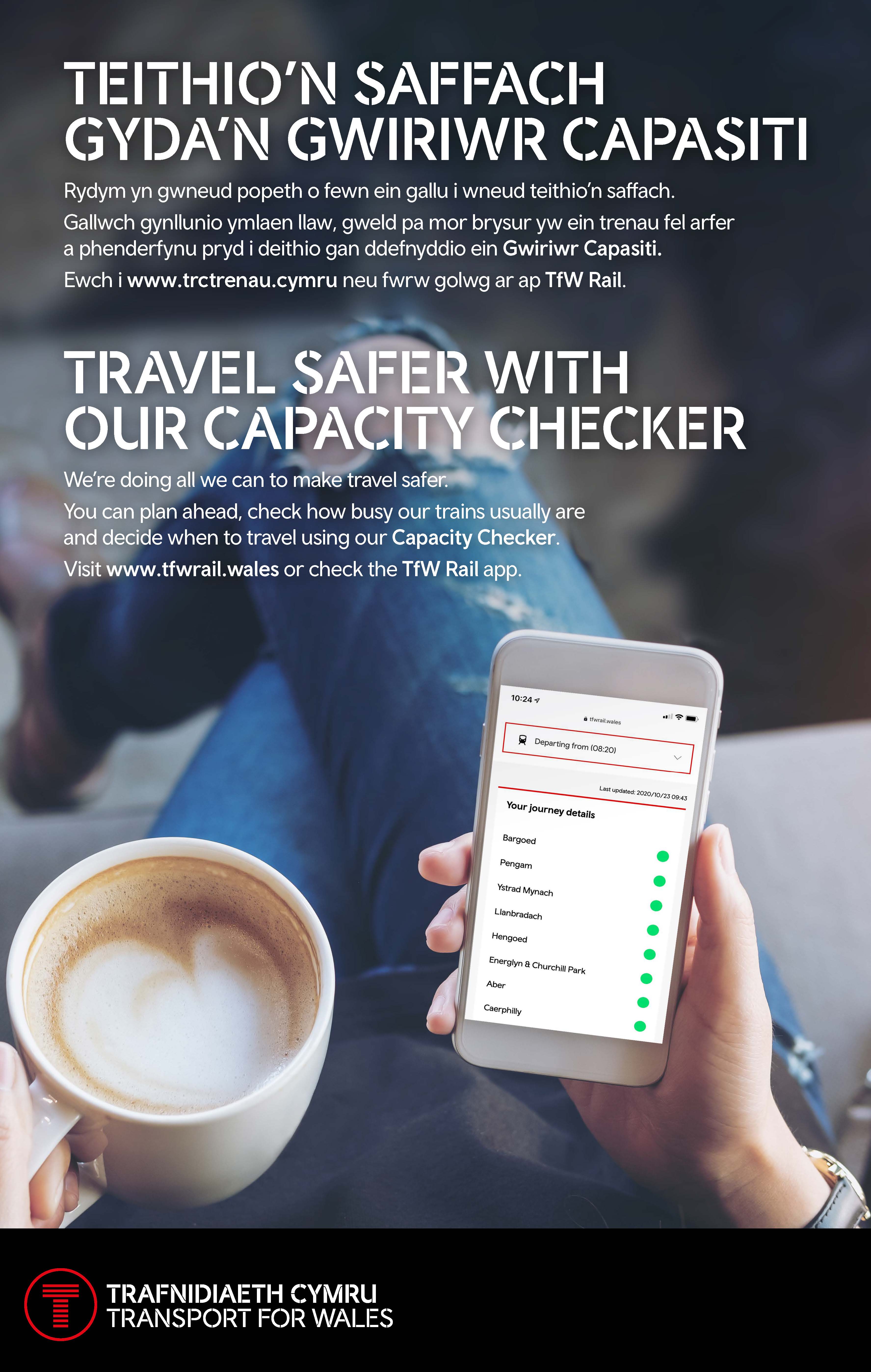 Transport for Wales is launching Capacity Checker, helping customers check before they travel which trains may have most space available for COVID-19 social distancing safety.
