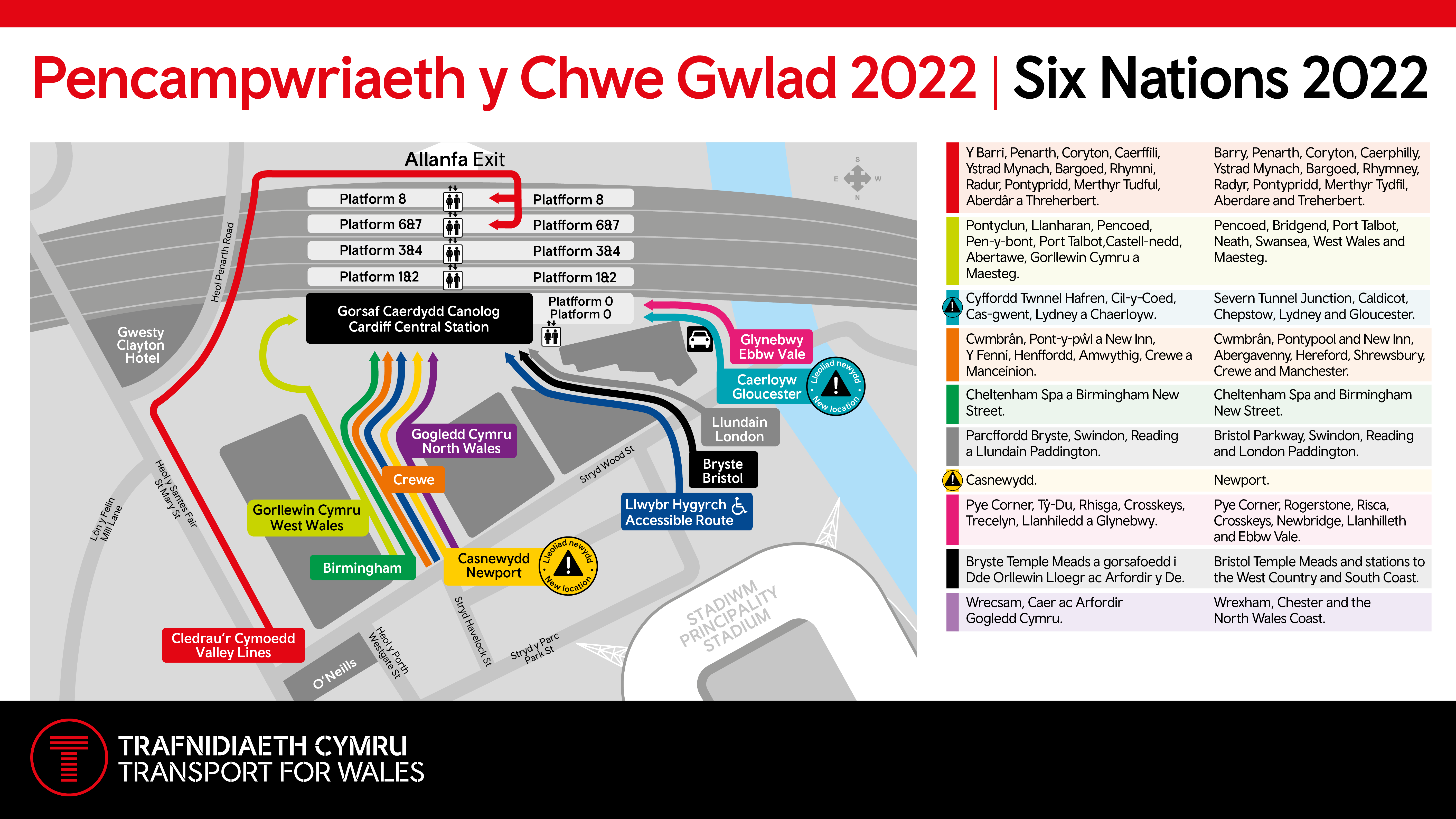 Colin Lea, Planning and Performance Director at Transport for Wales said: “We look forward to welcoming many thousands of rugby supporters travelling to and from Cardiff on our services on Saturday.