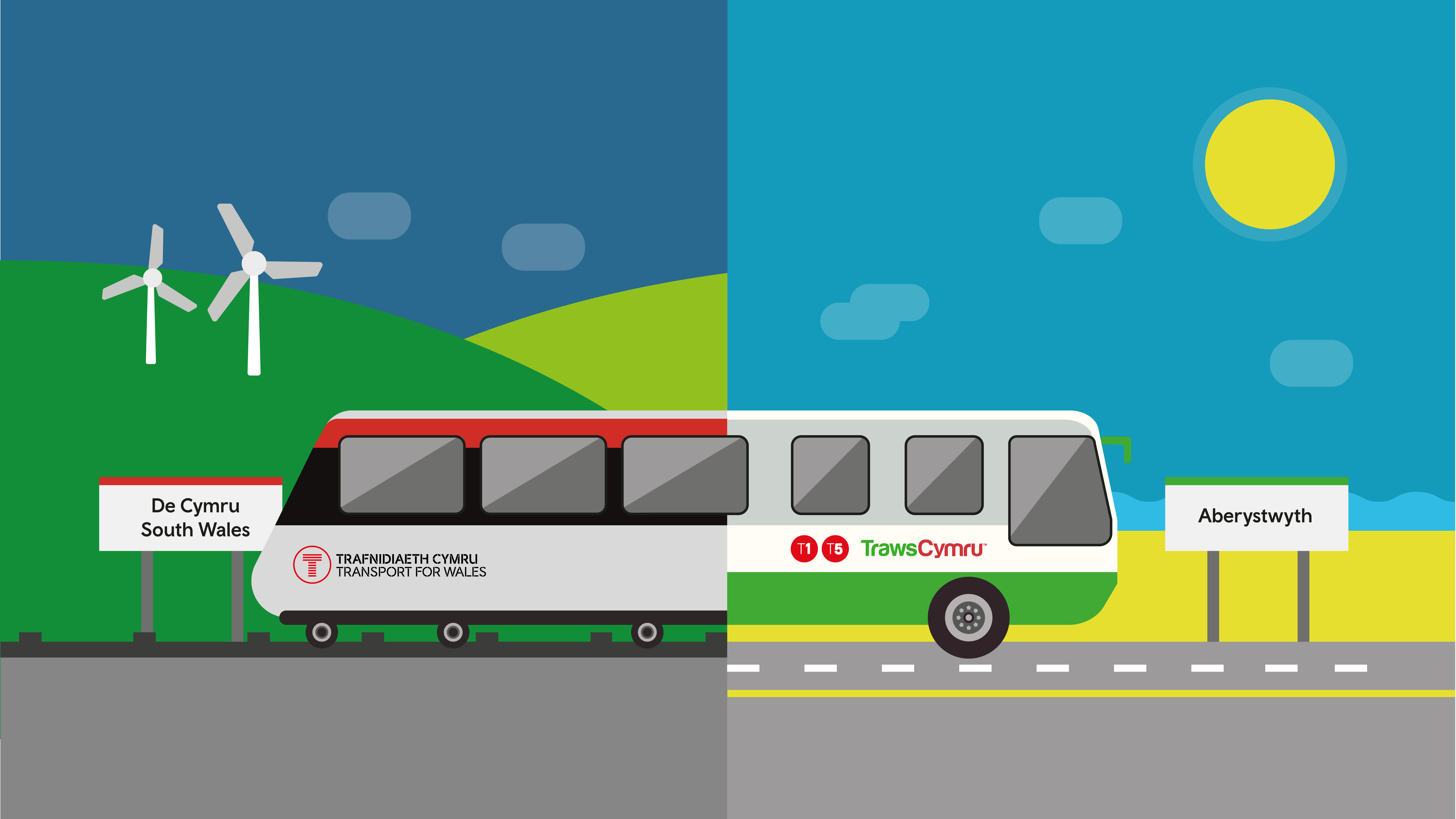 Travelling from South Wales to Aberystwyth, customers will start their journey on TfW services to Carmarthen, transfer to the TrawsCymru T1 bus service at Carmarthen and continue their journey on to Aberystwyth via bus.