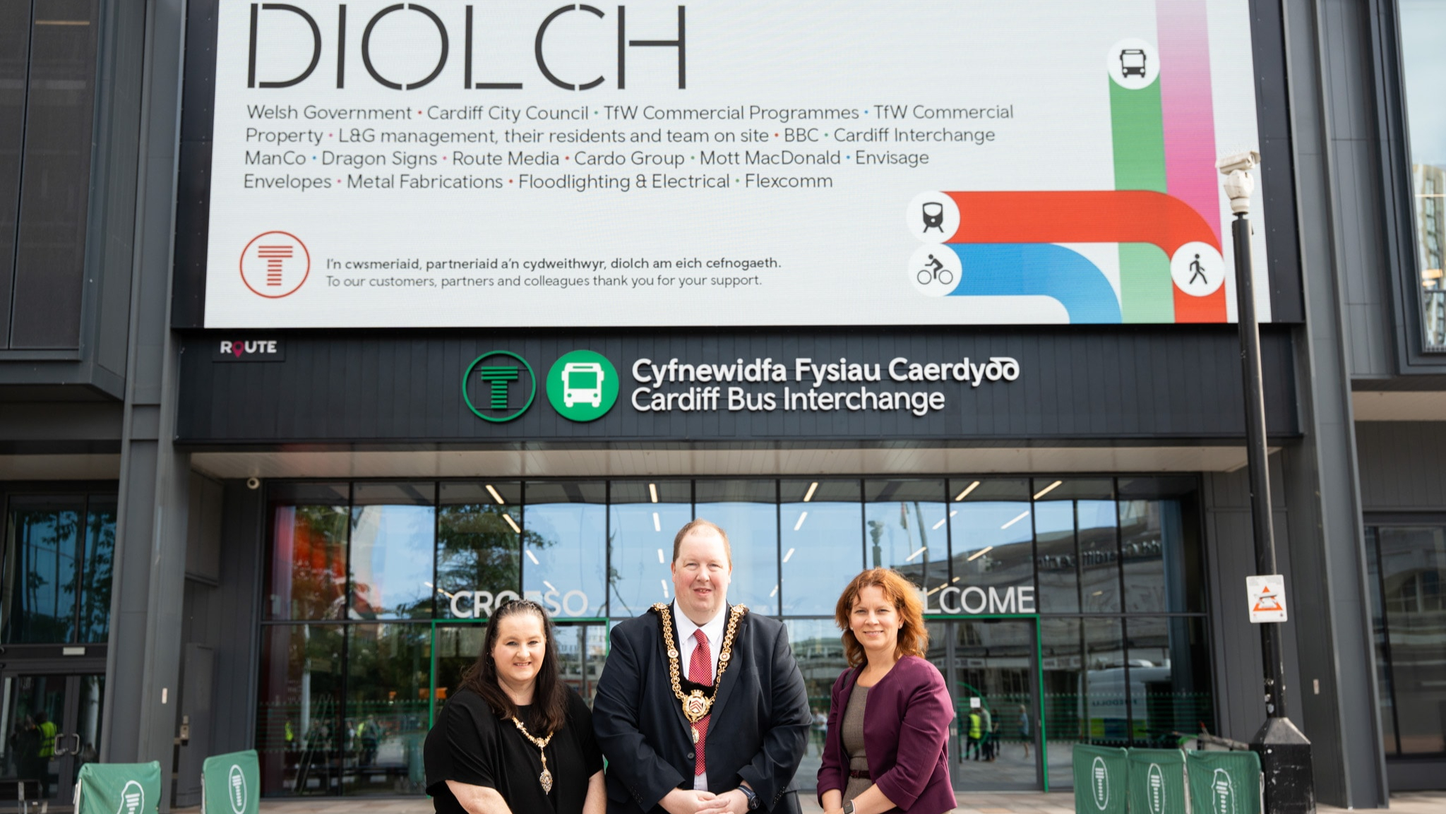 This prominent new feature, the result of a partnership between Transport for Wales (TfW), Welsh Government, and Cardiff Council, was officially opened and commissioned for use during a ceremony attended by The Right Honourable The Lord Mayor of Cardiff Councillor Adrian Robson and Lady Mayoress Councillor Jayne Cowan.